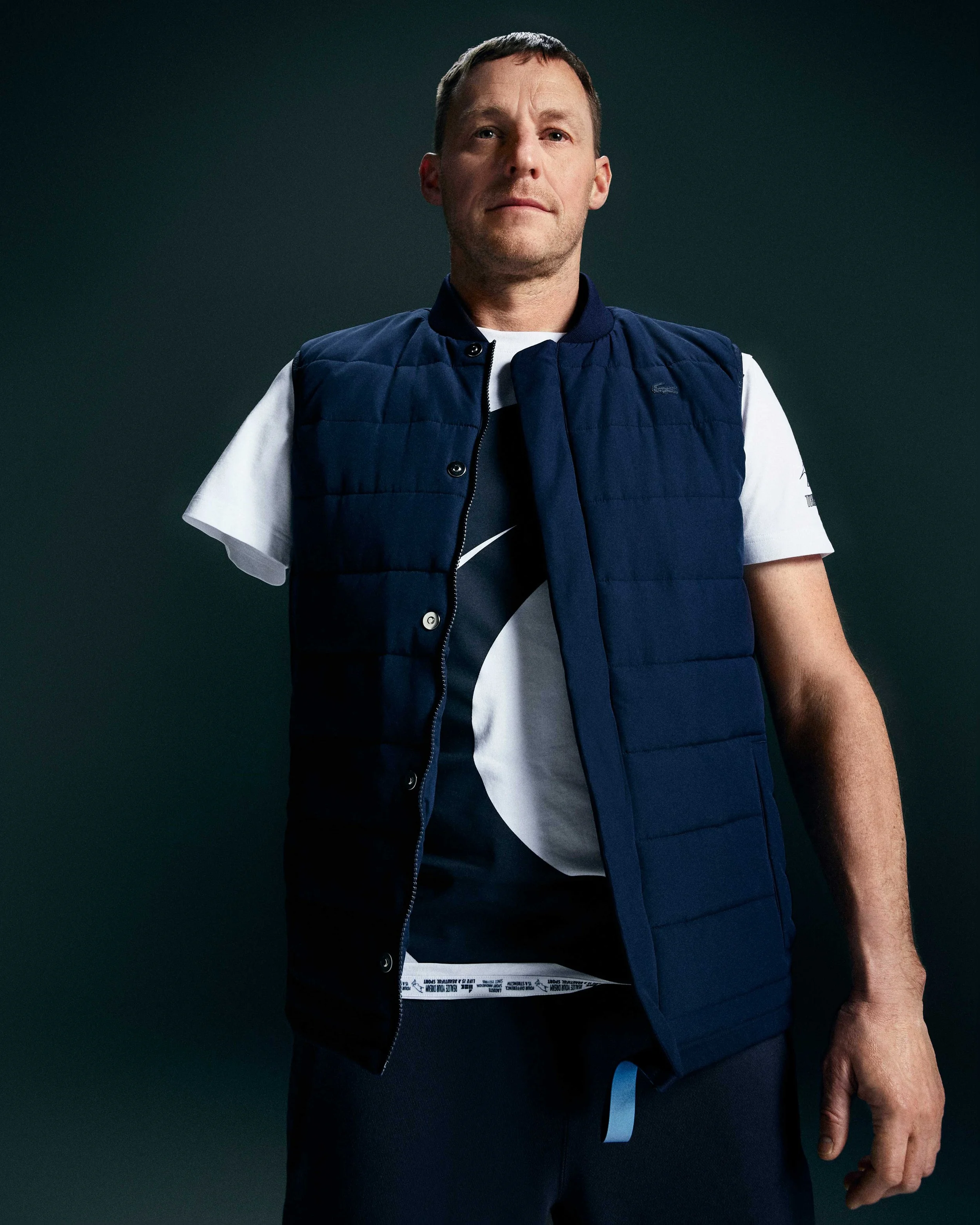 The swimmer has worked with Lacoste’s creative director, Louise Trotter, and their design team to incorporate features such as: elasticated loops as part of sleeves on jumpers so they can be pulled up more easily; snap buttons on polo shirts; magnetic closures on sleeveless parkas; and a revised backpack design for better access.